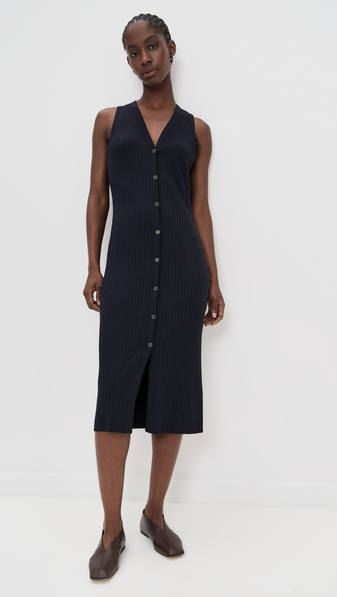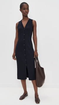 - Fabric: Mid-weight ribbed knit with stretch - Midi length - V neck - Sleeveless - Button placket - Shell: 46% cotton/30% viscose/22% polyester/2% spandex - Unlined - Wash cold - Imported, China Style #VINCE52947