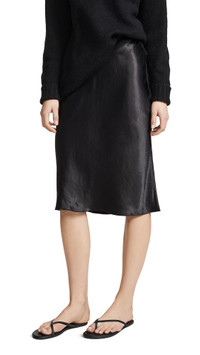 - Fabric: Charmeuse - Knee length - Elastic at waist - Shell: 100% acetate - Unlined - Wash cold - Imported, Chile - Solid-color design Style #VINCE50175 Size & Fit Customers say: Runs large; please size down. Model measurements: Size XS: Yvonne (5'10") Measurements from size XS Length: 28.75in / 73.0cm, from back