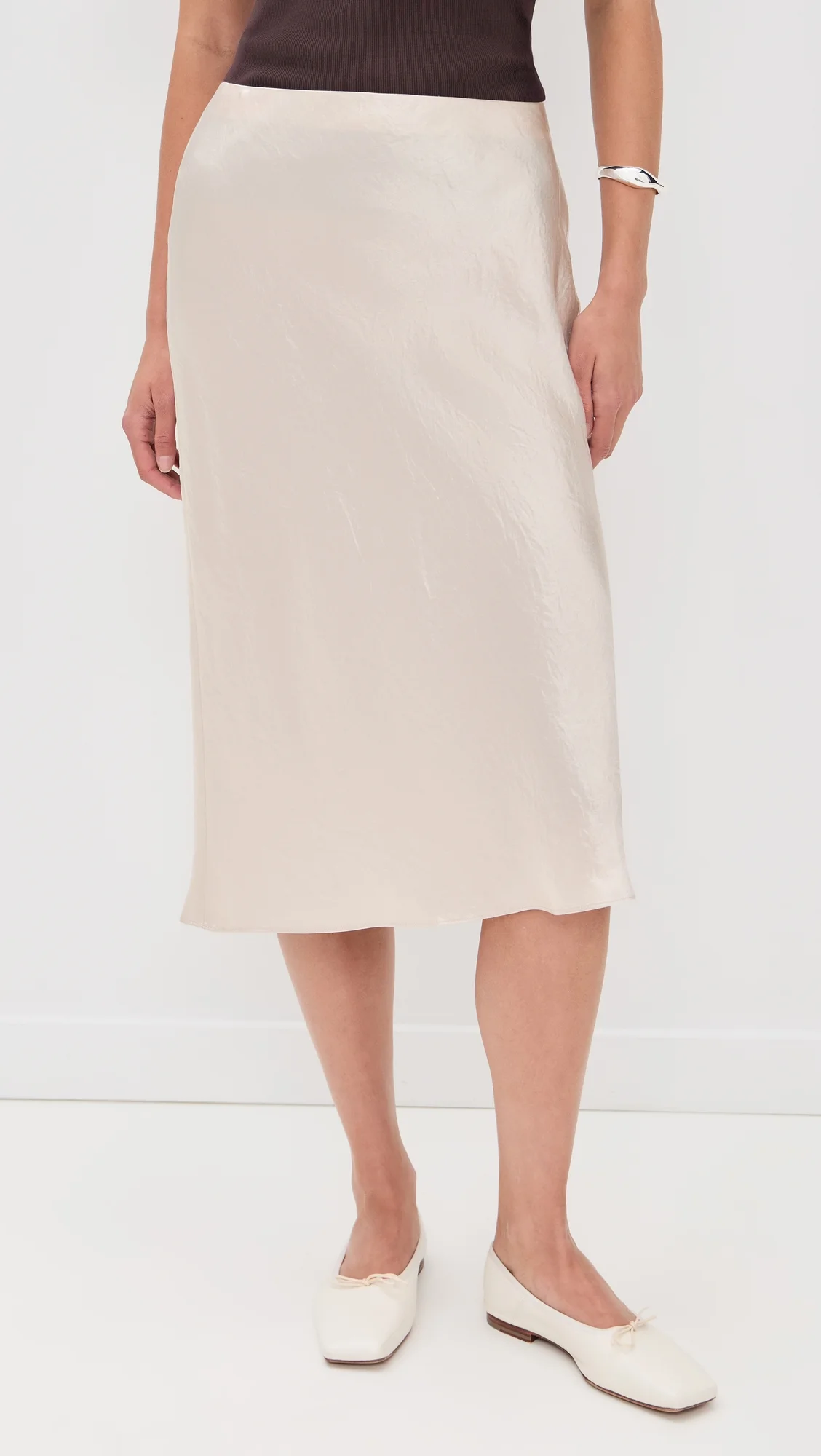 - Fabric: Charmeuse - Knee length - Elastic at waist - Shell: 100% acetate - Unlined - Wash cold - Imported, Chile - Solid-color design Style #VINCE50175 Size & Fit Model measurements: Size XS: Margaret (5'11") usually wears size XS Measurements from size XS Length: 28.75in / 73.0cm, from back