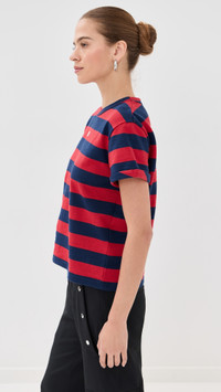 - Fabric: Mid-weight, low-stretch jersey - Stripe pattern - Embroidered logo detailing - Folded cuffs - Crew neck - Short sleeves - Shell: 100% cotton - Wash cold - Made in Portugal Style #WBONR30067