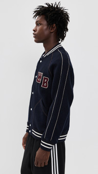 - Fabric: Mid-weight, low-stretch boucle knit - Ribbed trim with stripe pattern - Collared neckline - Long sleeves - Snap placket - Slant hip pockets - Shell: 100% virgin wool - Unlined - Dry clean - Made in Portugal Style #WBONN30068 Size & Fit Model measurements: Size M: Corey (6'1") usually wears size M Measurements from size M Length: 27.25in / 69cm Sleeve: 32.75in / 83cm Chest: 45.75in / 116cm