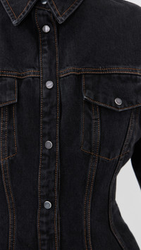 - Fabric: Mid-weight, non-stretch denim - Bustier-style seams - Contrast stitching - Collared neck - Long sleeves with snap cuffs - Button placket - Flap breast pockets with snap closures - Shell: 100% cotton - Wash cold - Imported, Turkey Style #WARDR30250