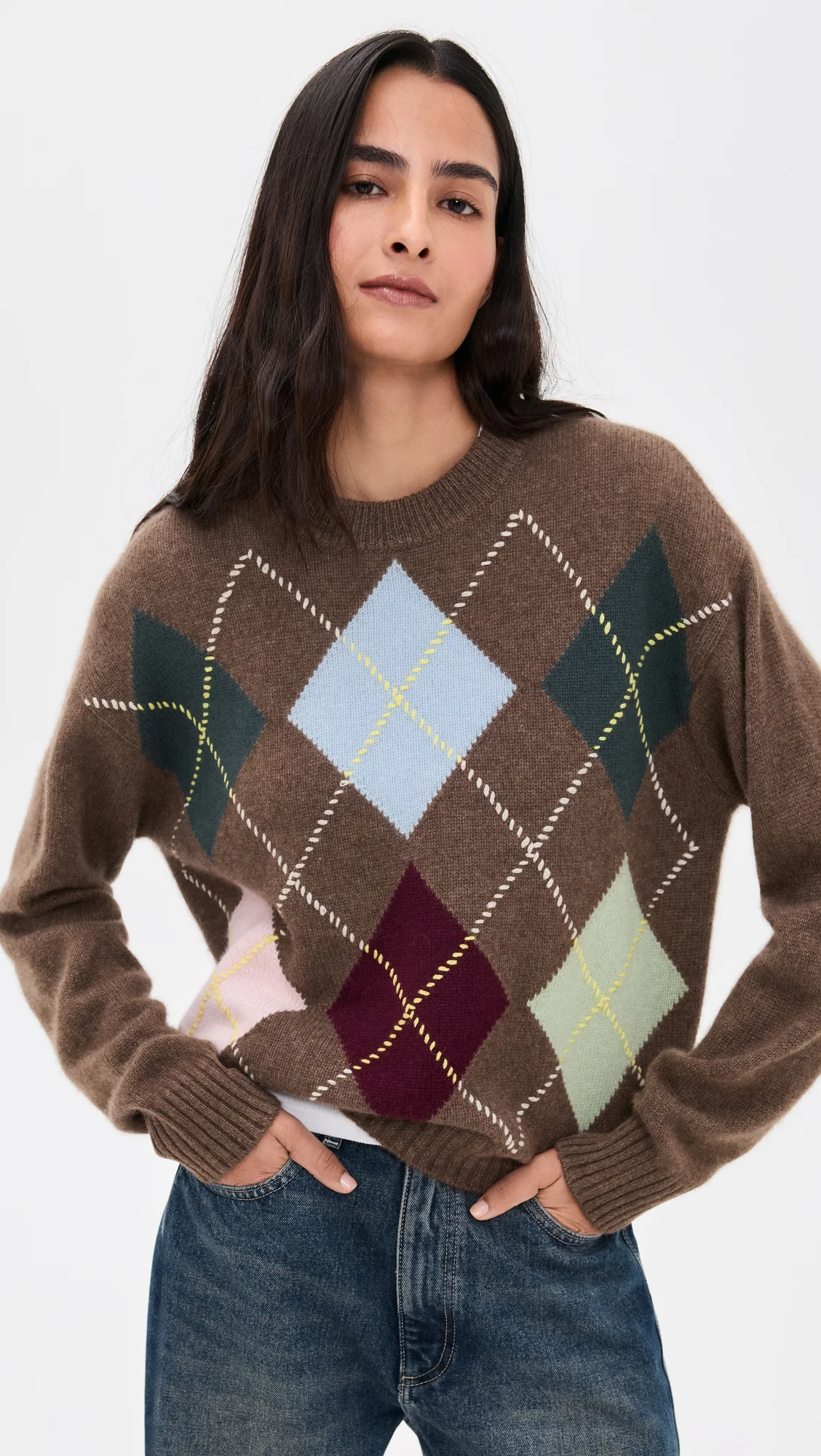 - Fabric: Mid-weight, super-stretch knit - Argyle pattern - Ribbed trim - Crew neck - Long sleeves - Shell: 100% cashmere - Dry clean - Imported, China Style #WHITT30461