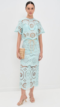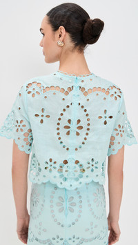 - Fabric: Lightweight, non-stretch linen - Allover eyelet embroidery - Removable bralette - Scalloped edges - Crew neck - Short sleeves - Hidden zip at back - Shell: 100% linen - Trim: 100% polyester - Optional slip with adjustable straps - Lining: 100% cotton - Dry clean - Imported, China Style #ZIMME43412 Size & Fit Model measurements: Size 0: Mily (5'11") usually wears size 0 Measurements from size 0 Length: 17in / 43.0cm