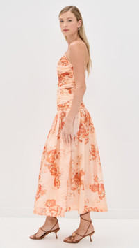 - Fabric: Mid-weight, non-stretch weave - Floral pattern - Covered elastic at back - Pleated bodice with boned inseams - Maxi length - Sweetheart neckline - Sleeveless - Hook-and-eye and hidden zip at back - Semi-sheer - Shell: 100% cotton - Lined bodice, unlined skirt - Dry clean - Imported, China Style #ZIMME43332