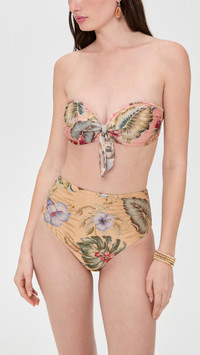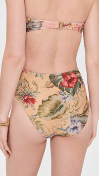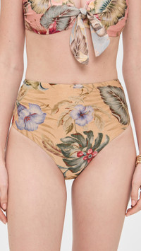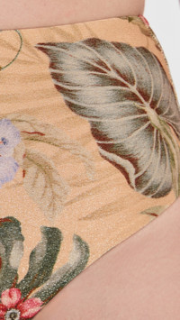 - Floral print and metallic threading - Moderate coverage - High waisted - Shell: 64% polyester/16% metallic/12% polyamide/8% elastane - Lined - Lining: 92% recycled polyamide/8% elastane - Hand wash - Imported, China Style #ZIMME43309 Size & Fit Model measurements: Size 0: Emily (5'9") usually wears size 0