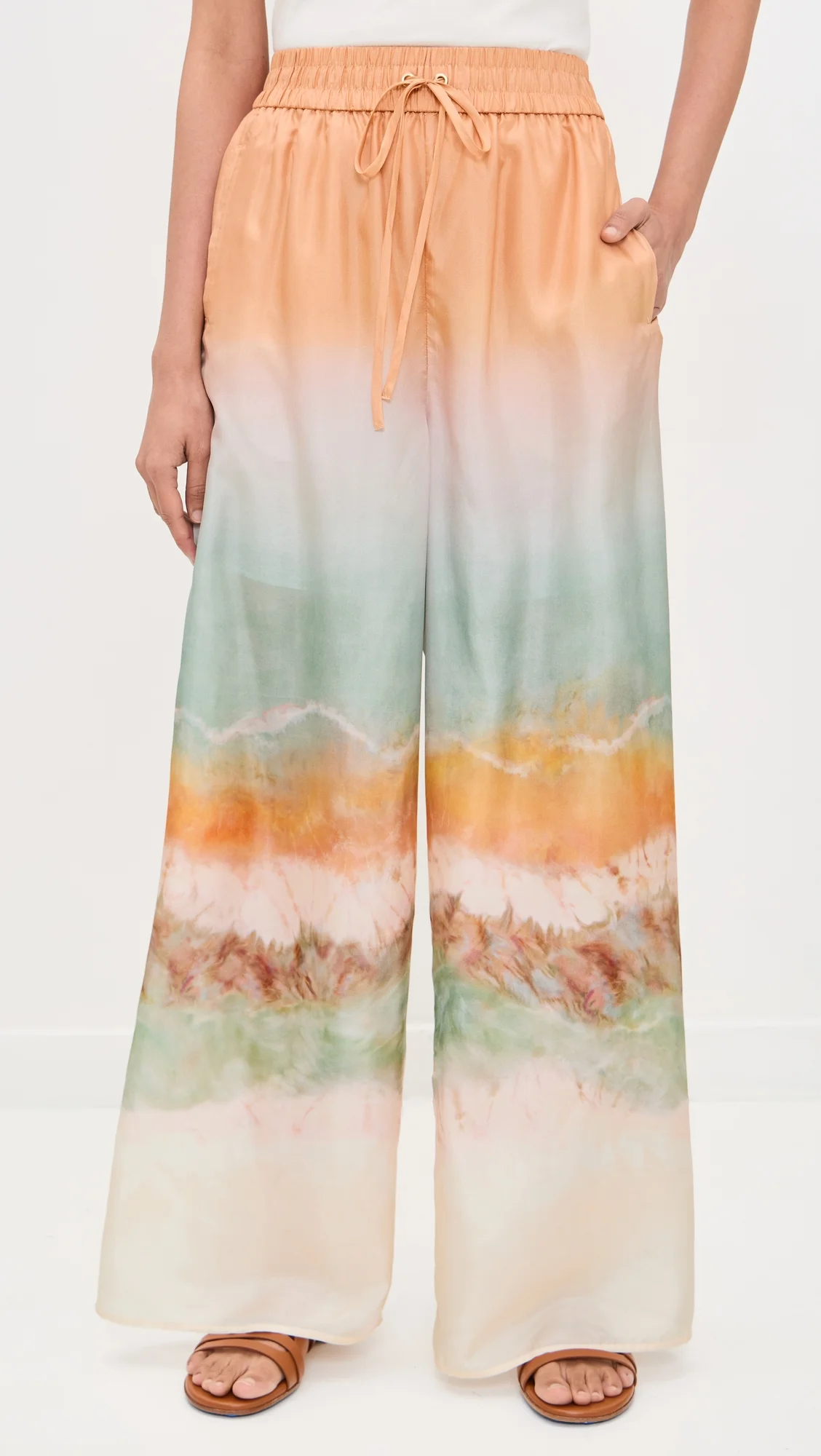- Fabric: Lightweight, non-stretch satin - Tie-dye print - Covered elastic waist with drawstring - Welt front pockets - Shell: 100% silk - Dry clean - Imported, Sri Lanka Style #ZIMME43440