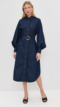 - Fabric: Mid-weight, non-stretch denim - Covered snap placket - Snap cuffs and shoulder epaulettes - Collared neck - Long puff sleeves - Self-belt at waist - On-seam side pockets - Flap breast pockets - Shell: 100% cotton - Unlined - Wash cold - Imported, China Style #ZIMME43353 Size & Fit Runs true to size. Designed for a slightly loose fit, with a closer fit at the bust, shoulders, and waist. Model measurements: Size 0: Giselle (5'10") usually wears size 0 Measurements from size 0 Length: 45.75in / 116.0cm, from shoulder