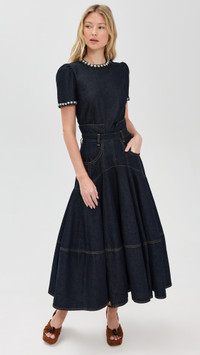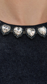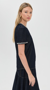 - Fabric: Lightweight, non-stretch denim - Heart crystal embellished trim - Gathered shoulders - Crew neck - Short sleeves - Hidden zip at back - Shell: 100% cotton - Dry clean - Imported, China Style #ZIMME43359 Size & Fit Runs true to size. Designed for a slightly loose fit, with a closer fit at the bust. Model measurements: Size 0: Giselle (5'10") usually wears size 0 Measurements from size 0 Length: 24.75in / 63.0cm, from shoulder