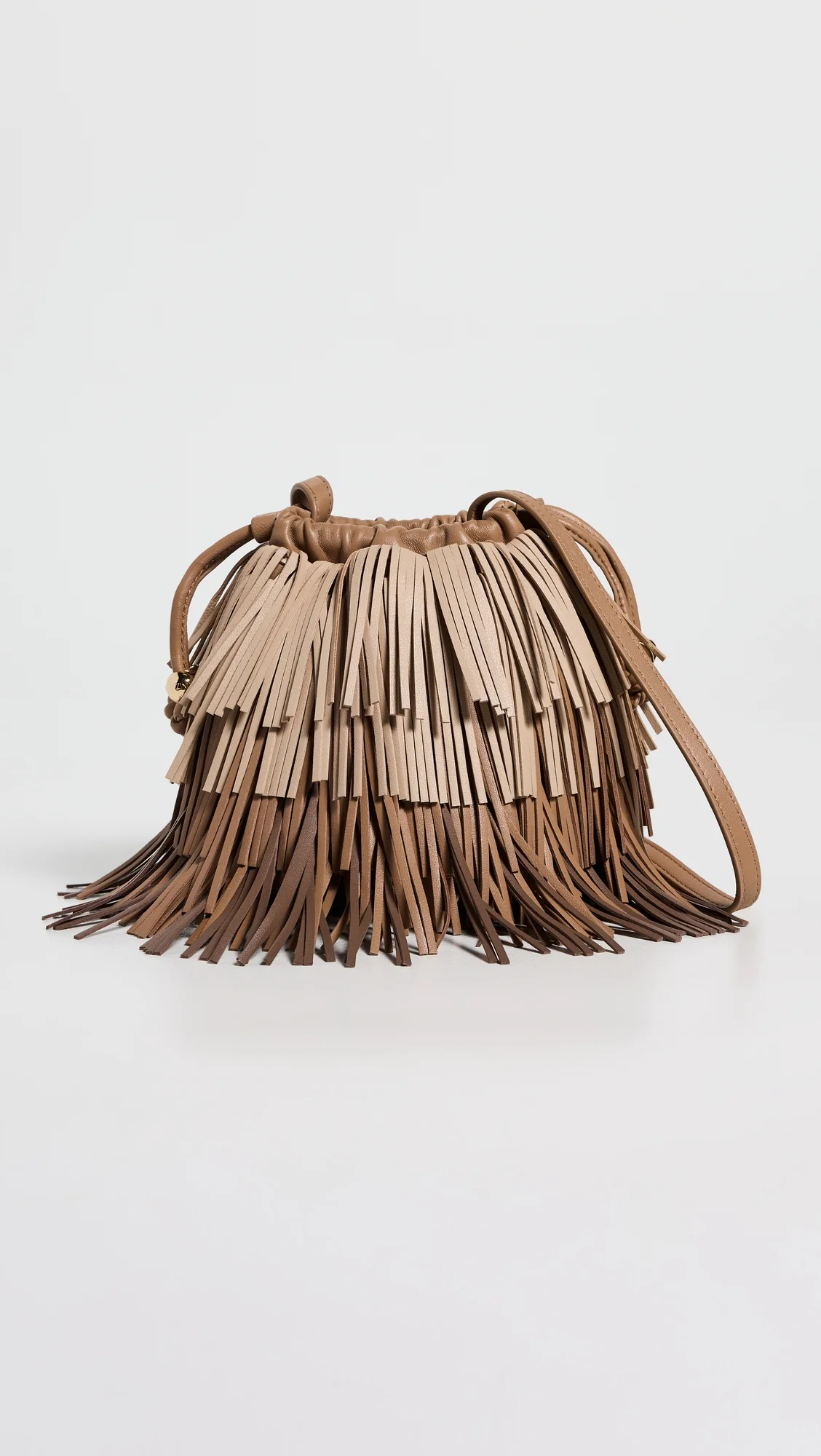 - Leather - Fringe details - Gold-tone hardware - Drawstring top - Adjustable strap - Lining: Textile - Weight: 9oz / 0.26kg - Imported, India Style #ZIMME43409