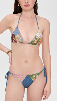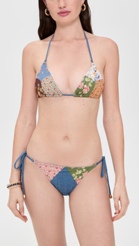 - Mixed floral print and denim panels - String bikini - Cheeky coverage - Ties at sides - Halter straps - Shell: 100% cotton - Lined - Lining: 80% polyamide/20% elastane - Hand wash - Imported, China Style #ZIMME43331