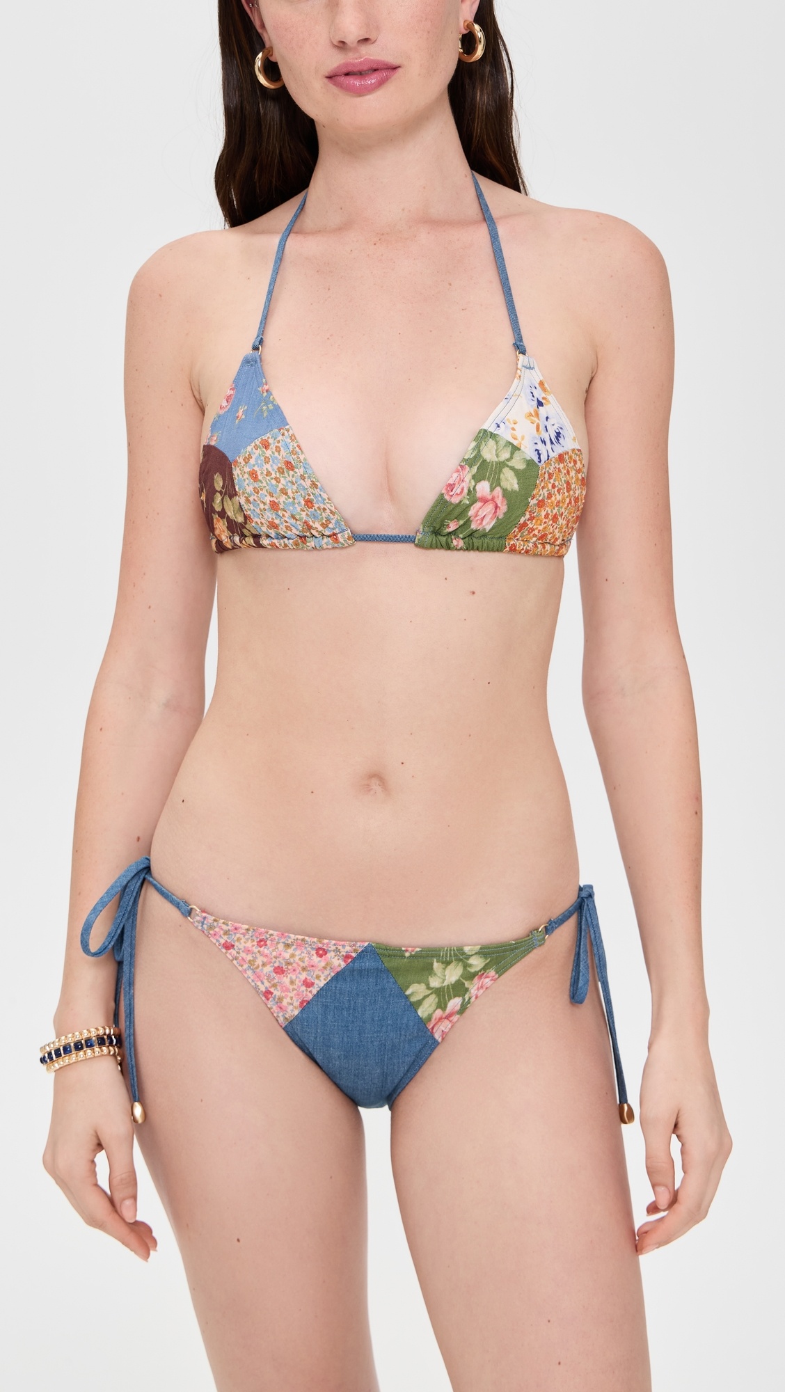 Lucky patchwork floral-print cotton and chambray triangle bikini Multi