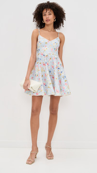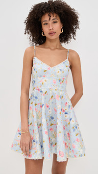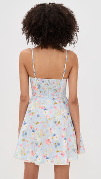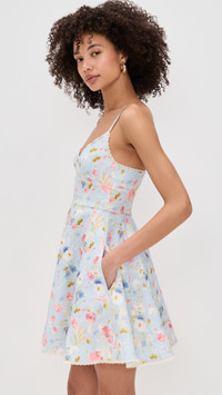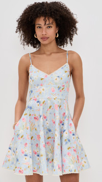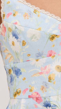 - Fabric: Mid-weight, non-stretch linen weave - Floral print and lace trim - Mini length - V neck - Hook-and-eye and hidden zip at back - On-seam side pockets - Shell: 100% linen - Lined - Lining: 100% cotton - Dry clean - Imported, China - Adjustable shoulder straps Style #ZIMME43297 Size & Fit Customers say: Runs large; please size down. Model measurements: Size 0: Drew (5'8") usually wears size 0 Measurements from size 0 Length: 33.5in / 85.0cm, from shoulder