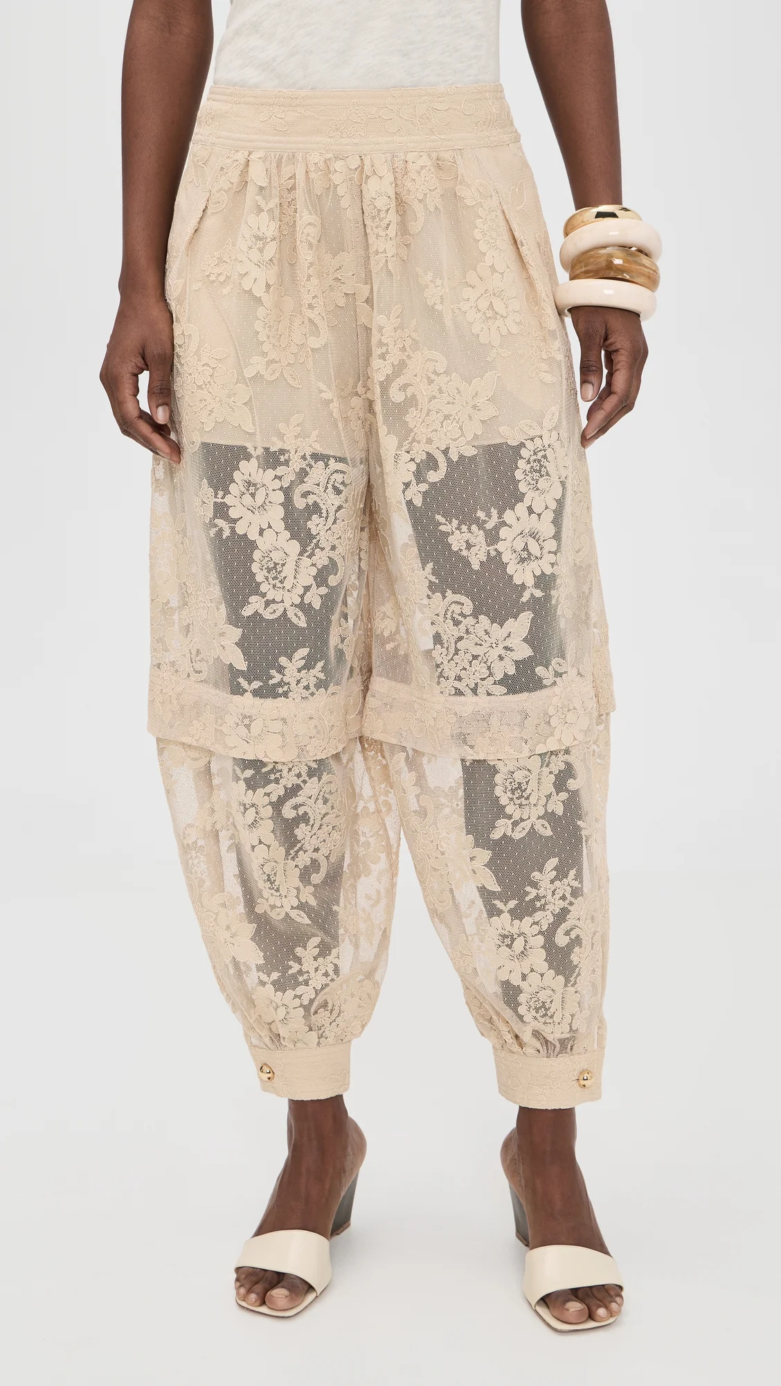 - Fabric: Lightweight chantilly lace with stretch - Button cuffs - Floral pattern - Hidden zip at back - On-seam side pockets - Semi-sheer - Shell: 100% polyester - Partially lined - Lining: 100% viscose - Dry clean - Imported, China Style #ZIMME43516 Size & Fit Model measurements: Size 0: Cher (5'11") usually wears size 0 Measurements from size 0 Rise: 14.5in / 37cm Inseam: 24.75in / 63cm Leg opening: 9.5in / 24cm