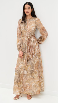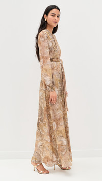 - Fabric: Lightweight, non-stretch satin - Keyhole at front - Leopard print - Maxi length - Crew neck - Long sleeves with elastic cuffs - Hidden zip at back - Tie self-belt - Shell: 100% silk - Lined - Lining: 100% viscose - Dry clean - Imported, China Style #ZIMME43463 Size & Fit Model measurements: Size 0: Priyanka (5'9") usually wears size 0 Measurements from size 0 Length: 57.75in / 147.0cm, from shoulder
