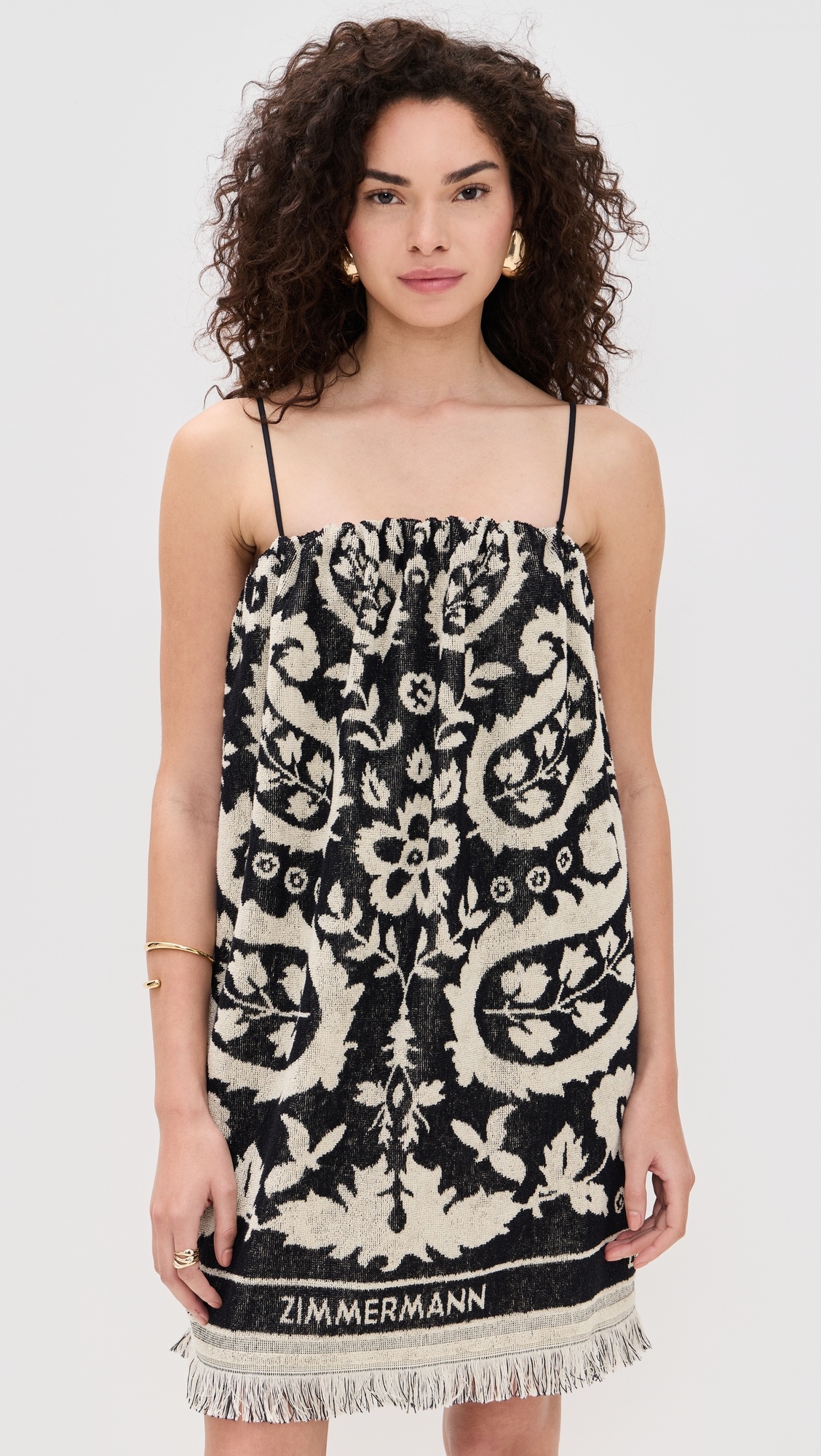 - Fabric: Mid-weight, non-stretch french terry - Floral print and fringe trim - Elastic top hem - Mini length - Square neckline - Optional, adjustable shoulder straps - Pullover design, no closure - On-seam side pockets - Shell: 100% cotton - Unlined - Hand wash - Made in Portugal Style #ZIMME43311