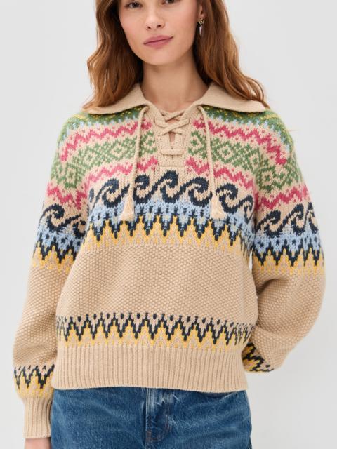Cotton Wool Blend Long Sleeve Tie Pullover