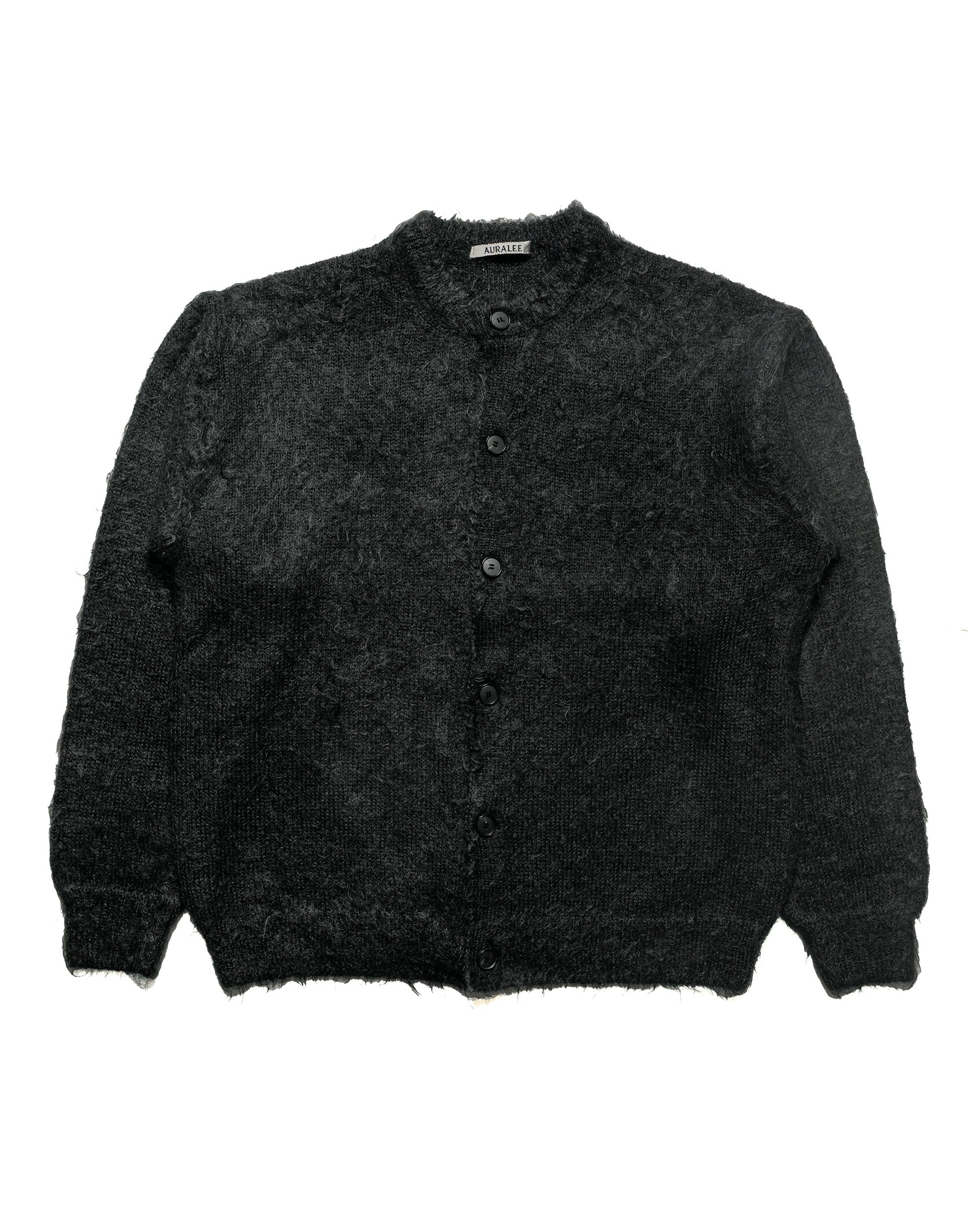 Brushed Super Kid Mohair Knit Cardigan Ink Black