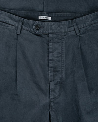 Auralee’s polished take on the classic chino, cut with a relaxed fit, a straight leg, and a single front pleat that keeps things sharp. The fabric is woven from twisted three-ply yarns of Egyptian extra-long staple Finx cotton. Meaning it’s incredibly soft with a dense, full-bodied feel that breaks in like a dream. Each pair is garment-dyed and hand-finished, giving it a beautifully uneven tone full of depth and personality. DETAILS - Product-dyed Finx cotton chino with hand finishing - Extended tab button waist closure - Pleated front - Side seam pockets & button flap coin pocket - Rear double welt pockets - Button tab waist cinches - 100% cotton - Made in Japan - Model is 6’0” (183cm), 155lbs (70kg) and wearing 4