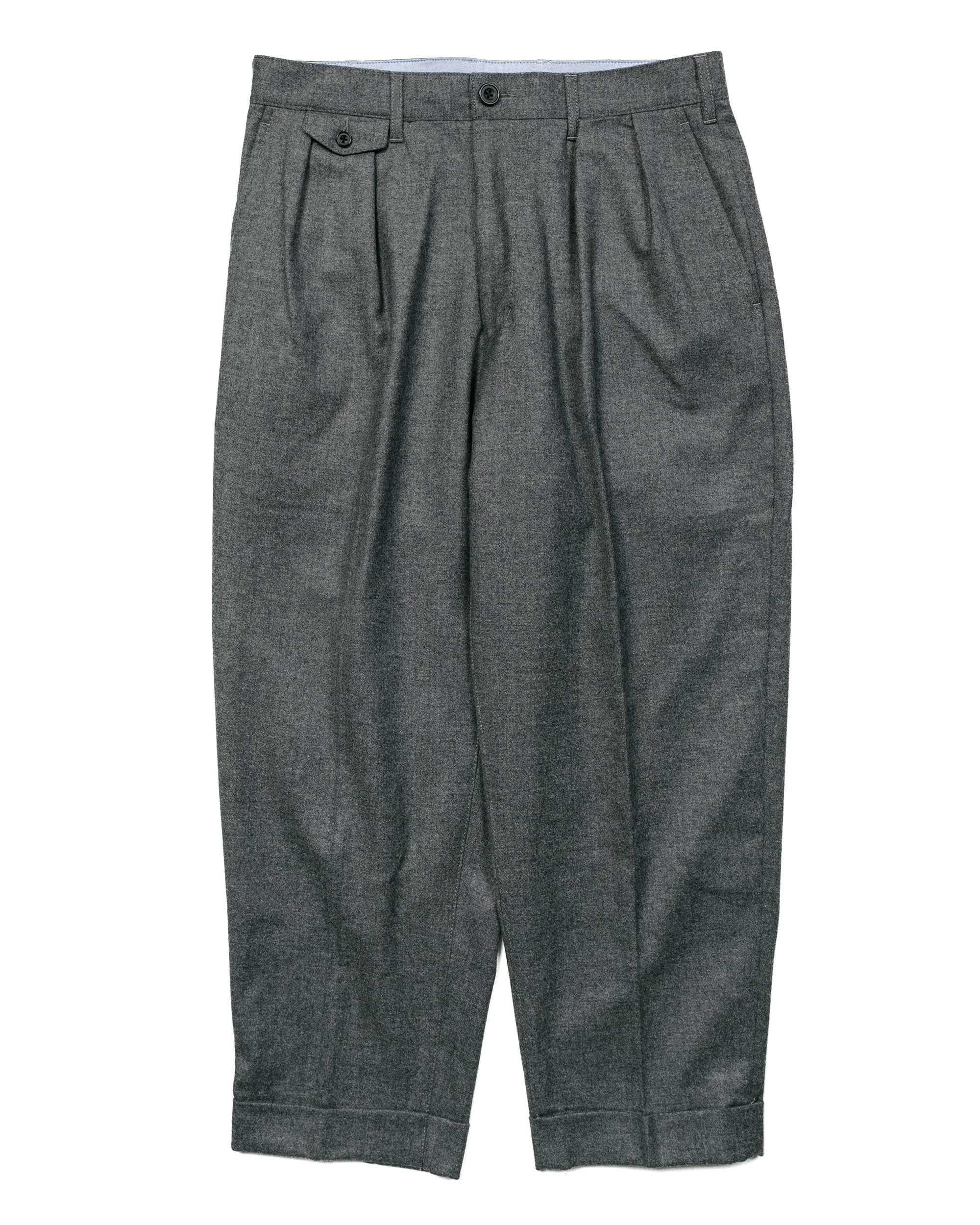 This pant is the definition of staple. Wide, cropped with a taper. Count me in, each and every time. This season we brought it back with a navy wool with liner. AKA The 2pleats to end all other 2pleats. DETAILS - Cropped fit - Double inverted pleats - Button coin pocket - Front slash pockets & rear welt pockets - Zip fly - Half lined - Cuffed hem - 85% wool 12% nylon 3% polyurethane body, 100% polyester lining - Model is 5’8” (172cm), 130lbs (59kg) and wearing S