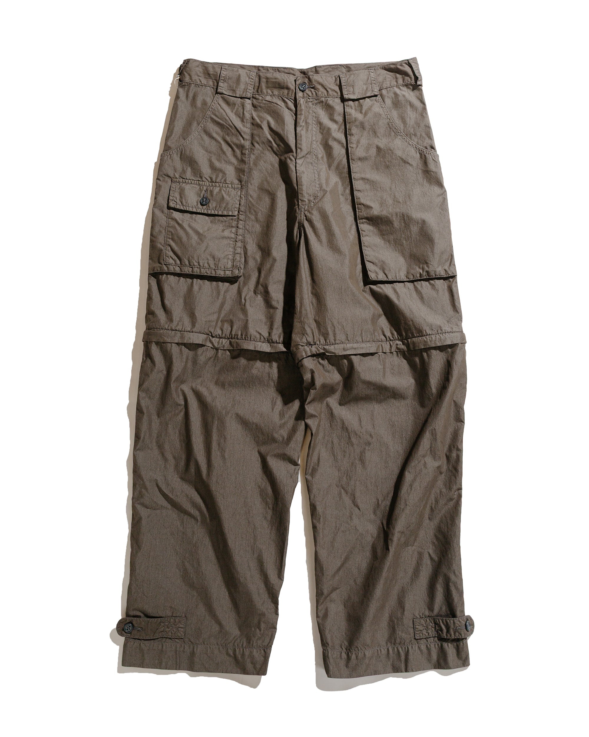 The Titus special. 'Jon, I need these for when I go camping'. You have pants one minute and then bam you're in shorts. What's that, the mosquitoes are getting at you, double bam, you're back in pants. What I'm trying to convey, is that this is like having the convertible of pants. Think Corvette than think these pants. DETAILS - Garment-dyed high density cloth woven of cotton warp & nylon weft - L-shaped gusseted front pockets & utility button flap pockets - Button flap rear pockets - Zips at knees to convert into shorts - Drawstring waist with button waist & zip fly - Adjustable button hem - 69% cotton 31% nylon - Model is 6'0” (183cm), 140lb (kg) and wearing L