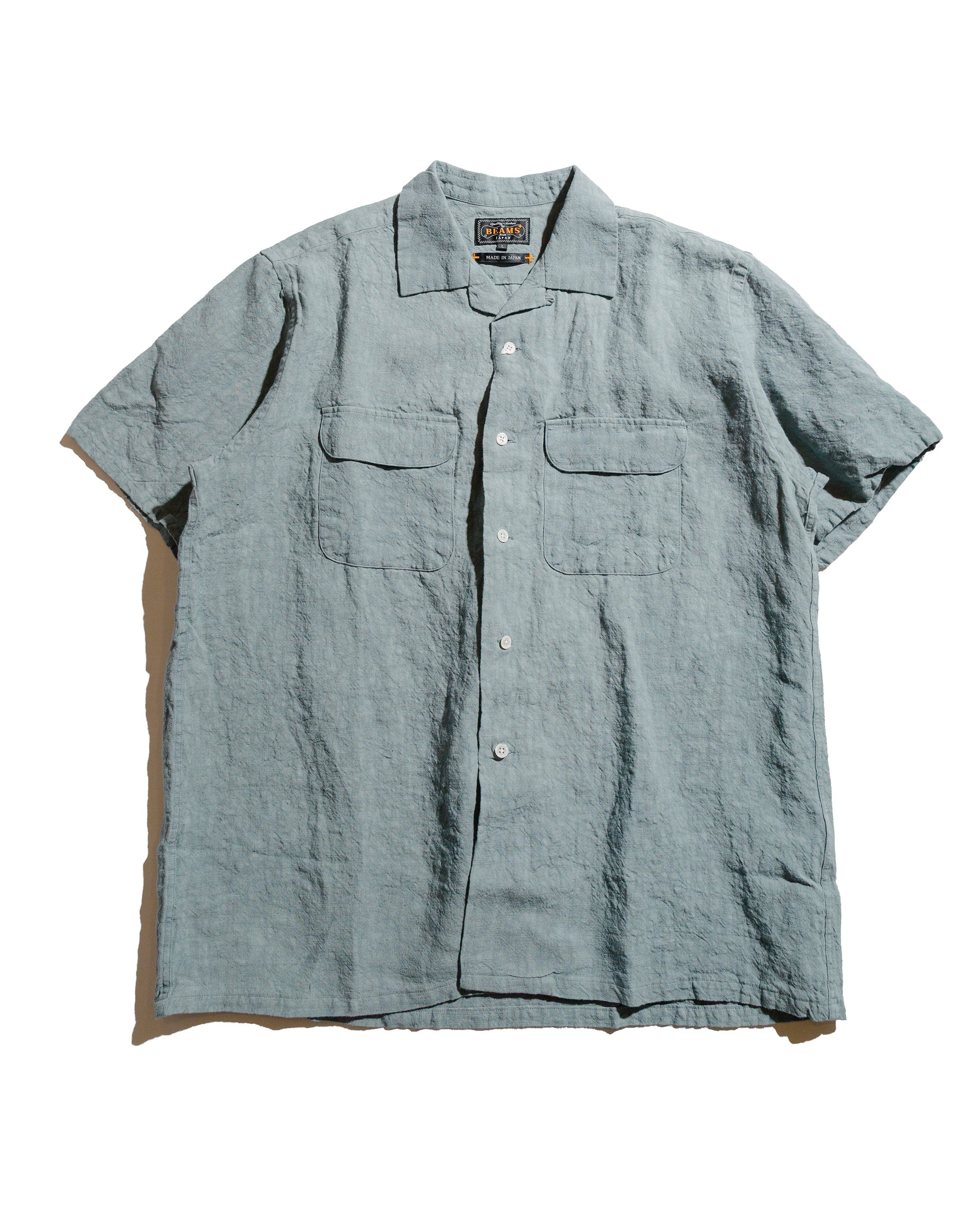 This is how achieve perfect summer shirt status. Linen. Open collar. Staright hem. The rinse and repeat of good short sleeve button downs. Don't believe me? Just try one on and feel for yourself. DETAILS - Linen woven - Open collar - Flap chest pockets - Rear shoulder pleats - Straight hem - 100% linen - Made in Japan - Model is 6’2” (189cm), 160lbs (73kg) and wearing L