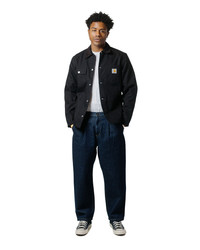 Does it get more classic Carhartt than this? Rigid black canvas Michigan coat. What more could you ask for from this brand. This is literal perfection in a jacket and should be a pattern for all others to follow. DETAILS - 12oz. 'Dearborn' canvas - Corduroy top collar - Button flap patch chest pocket on left, square label patch chest pocket on right - Patch hip pockets - Adjustable cuffs - Striped blanket lining & nylon taffeta lined sleeves - Triple stitched - 100% organic cotton - Model is 6'1" (186cm), 160lbs (73kg) and wearing size M