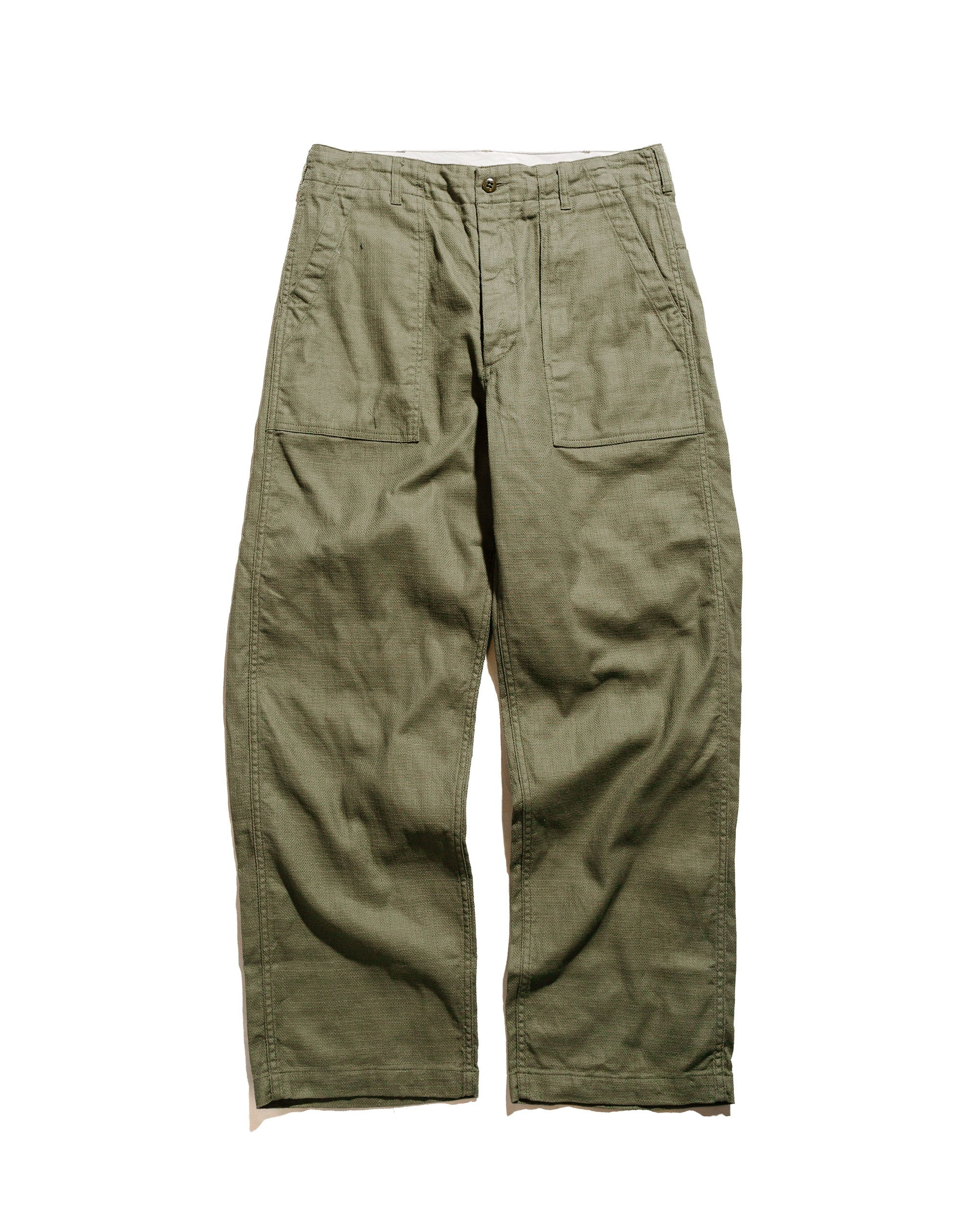The most consistent pant in the game. The cream of the crop, never fails, always changing, number one in our hearts and on our legs, the fatigue pant. Fabrics, fit, doohickies, you name they do it. DETAILS - Drawstring waist & zip fly - Front patch slash pockets with hidden zip pocket on left - Rear button flap patch pockets - 90% cotton 10 % linen - Made in USA - Model is 6’0” (183cm), 155lbs (70kg) and wearing S