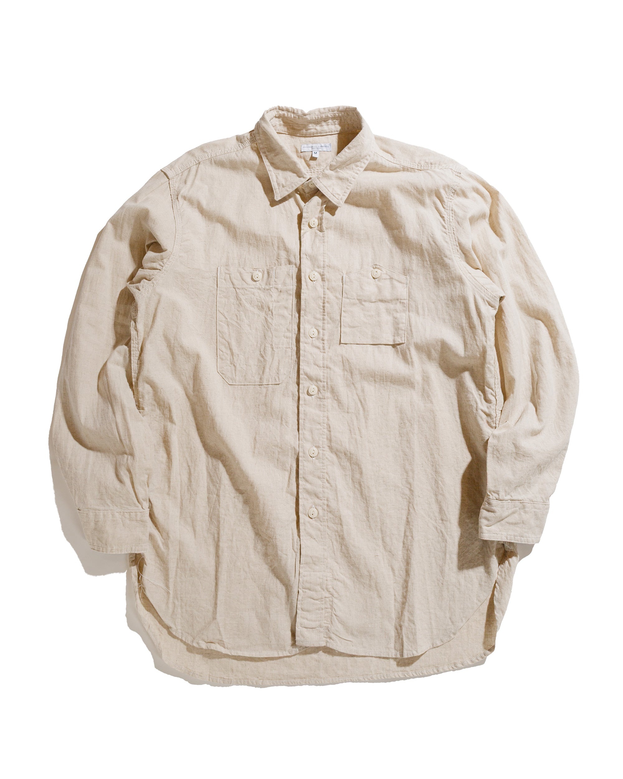 We are channeling our inner 2013s right now! The Workshirt has officially been RESURRECTED. 50% Cotton - 50% Linen. This is what the season should be made out of. Not only the clothes but the air we breathe. The workshirt will never die. DETAILS - Oversized button chest pocket with hidden pen slot & inverted button chest pocket - Reinforced elbows - Curved hem with unfinished serge detail at gusset - Cat eye buttons - 50% cotton 50% linen - Made in USA - Model is 6'0” (183cm), 140lb (kg) and wearing M