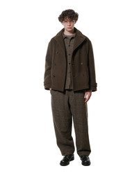 In 2017 we visited Evan Kinori's showroom and were enbamored with his product. The timing wasn't right so we waited...and waited...and waited and now we have the absolute good fortune of carrying a brand we have long admired from afar. From construction to materials there are few if any who do it better. We call this the last stand before the elements. ' Nature's last stand. DETAILS - Double weave blanket cloth with cotton core surrounded by wool, heavily brushed on both sides - Welt side pockets with patch hip pockets - Adjustable sleeve button tabs - Double breasted - 74% wool 24% organic cotton - Made in Japan - Model is 6’2” (189cm), 160lbs (73kg) and wearing L