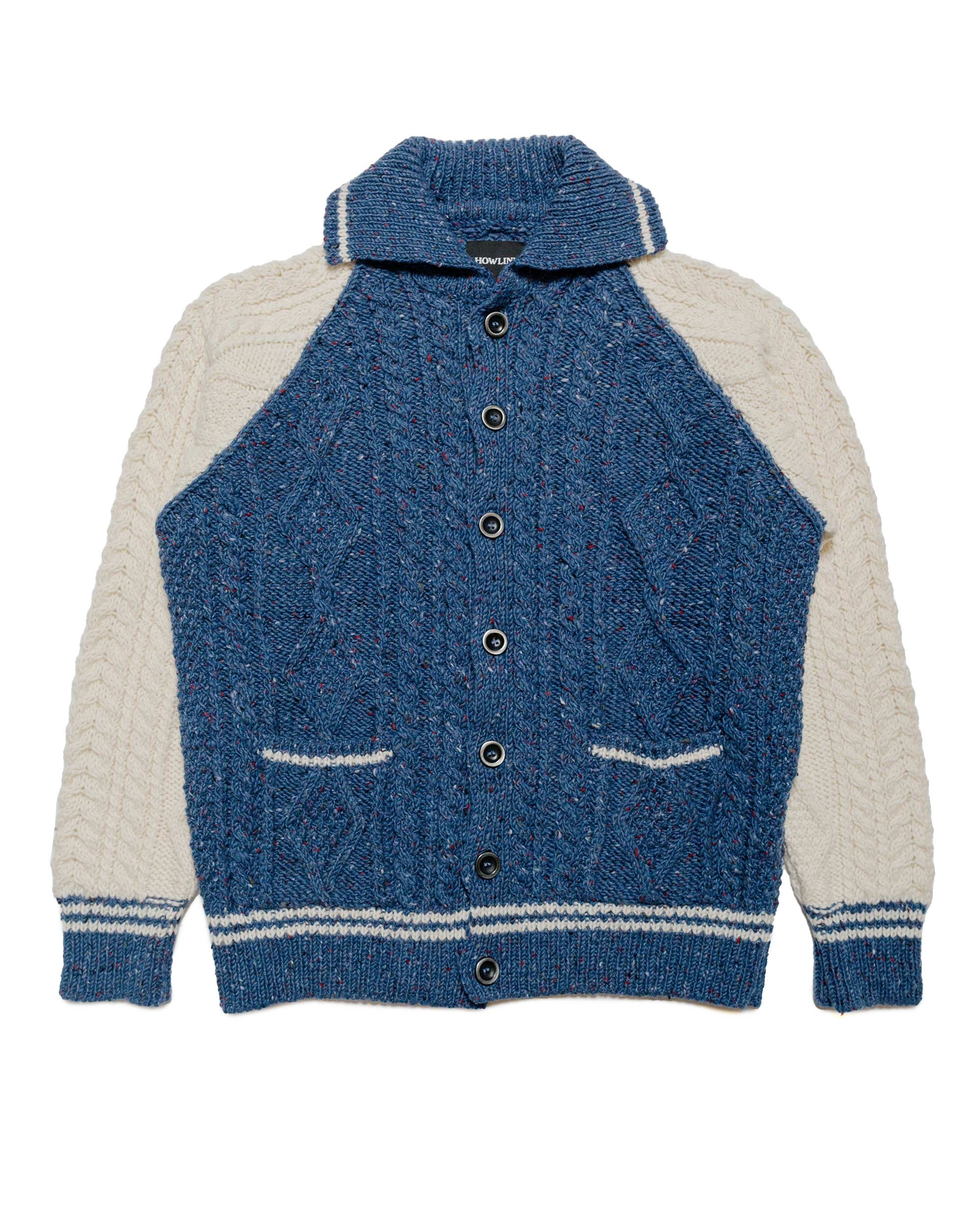 I can tell you right now Jonathan described this as a hug in a sweater. I wish I could make this up but I can't. And to be completely honest, when envisioning what I would sound like in his mind this is exactly what would come to mind. And then he would say something about the colour and how epic the white and blue go to together. DETAILS - Natural pure wool cable pattern knit - Hip pockets - Ribbed collar, cuffs & hem - Custom metal Howlin' buttons - Hand finished - 100% wool - Made in Ireland - Model is 6’2” (189cm), 160lbs (73kg) and wearing M