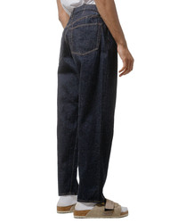 How could we say no to a pair of perfect denim. We didn't. They're right in front of your eyes! And for the visually disabled allow me to help. What you are witnessing is a dark pair of denim. A FIRE dark pair of denim. With a beautiful wide to taper fit than will make anyone trying these on look good. That's right, these are NICKY approved! DETAILS - Washed 13.5oz. selvedge denim - Five pocket - Relaxed wide taper fit - 100% cotton - Made in Japan - Model is 6’0” (183cm), 155lbs (70kg) and wearing 32
