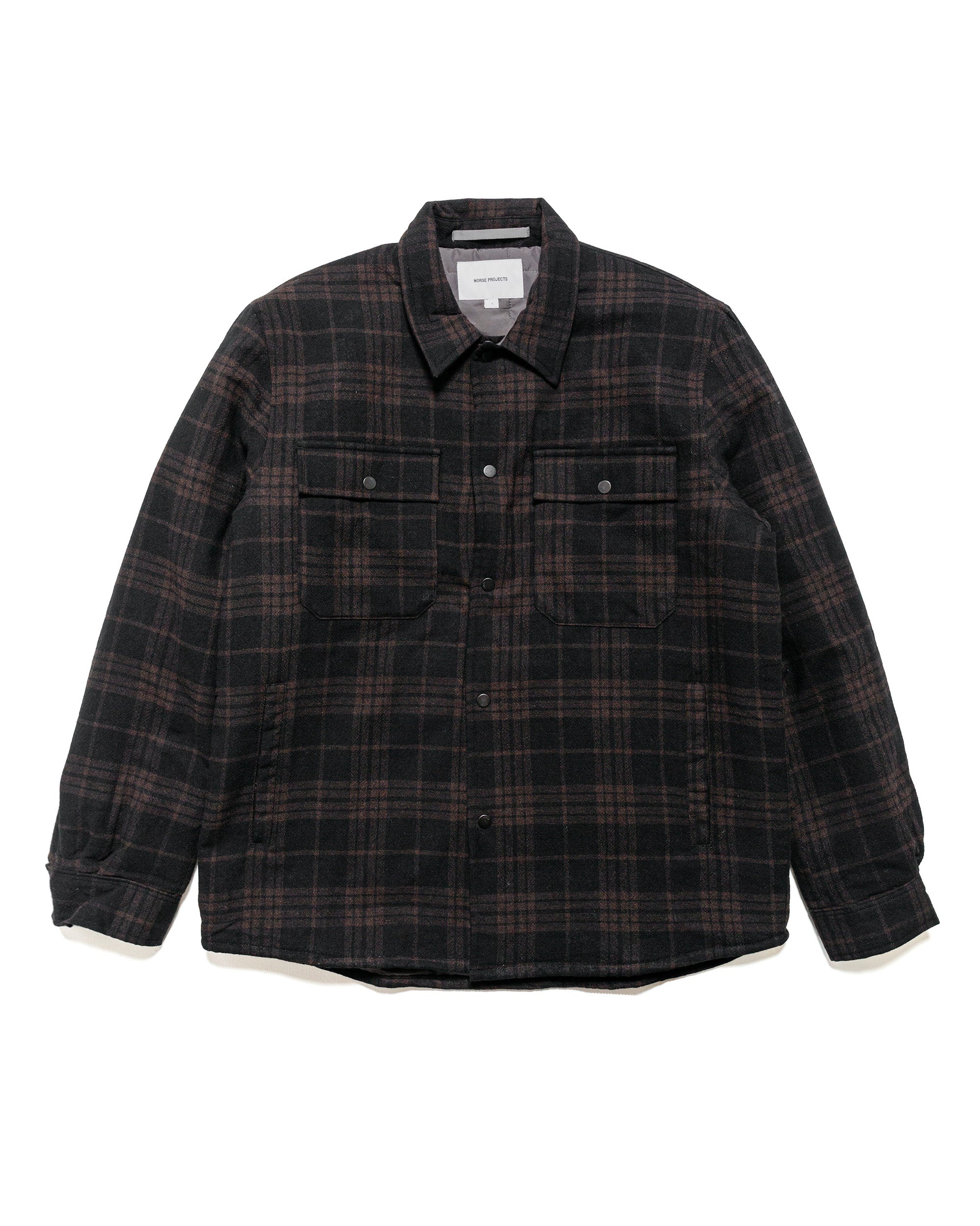 Hjalmer Insulated Wool Check Overshirt Espresso