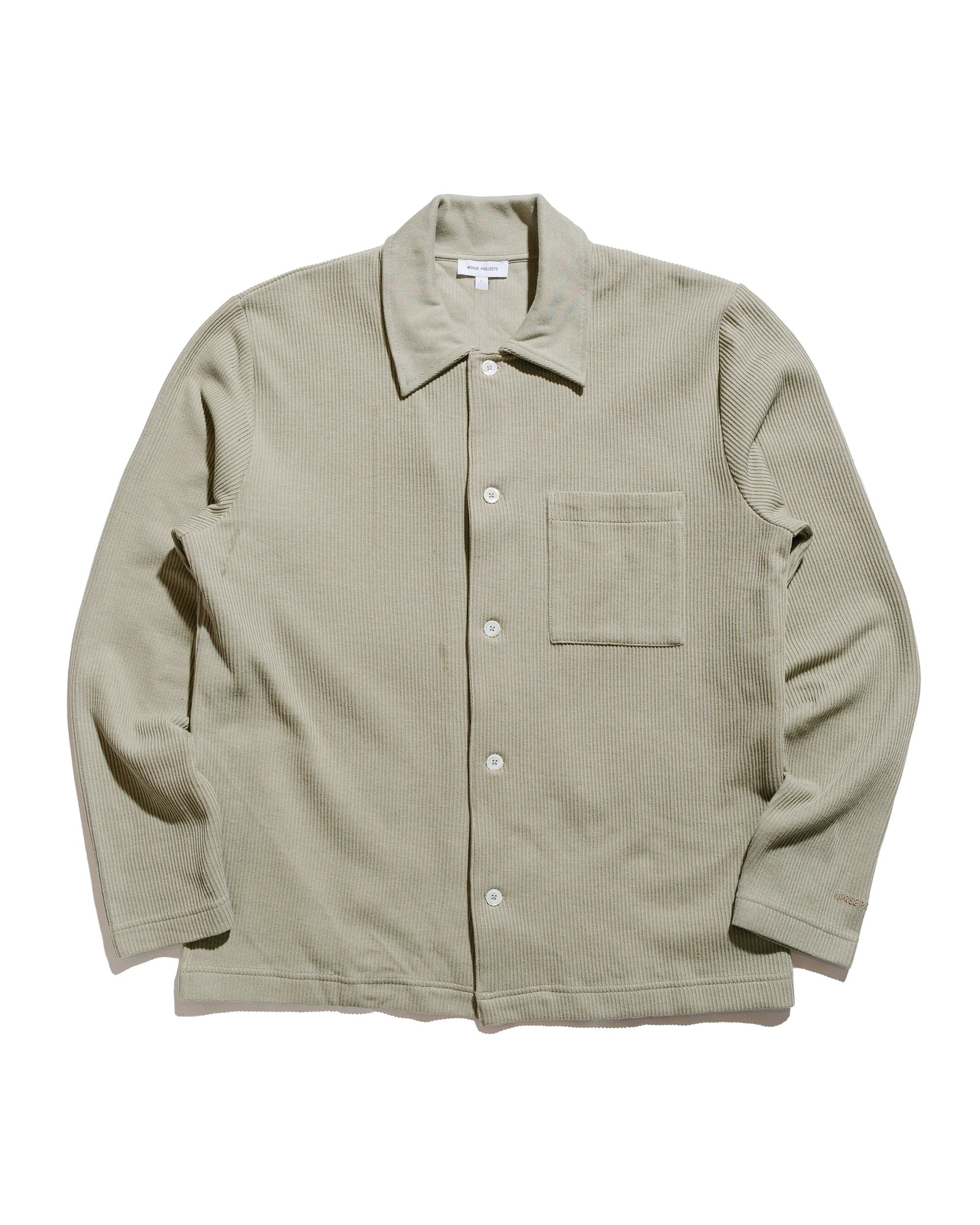 We've been wait for the Jorn to come back in stock mainly from the perspective we can say jorny again. But other than that, this is the shirt we all need. Navy, slightly oversized, and the fabric, it's all about the fabric, double face rib knit. This is what Norse does best. DETAILS - Double face rib knit cotton polyester jersey - Rib knit collar - Chest pocket - Straight hem - Embroidered logo on sleeve - Twin needle stitched hem & cuffs - 50% cotton 50% polyester - Made in Portugal - Model is 6’0” (183cm), 155lbs (70kg) and wearing L