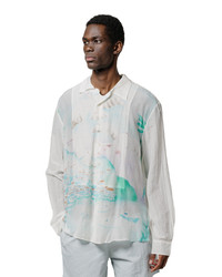 Charle said he would wear this to Church because it reminded him of being angelic. Now Charle ain't no angel but he's not wrong about this shirt. Easy, breezy raw silk with a side of comfort. This relaxed look will allow you to go through life without a care. And If it doesn't get you in to heaven I have no idea what will. DETAILS - Printed cotton silk - Rear box pleat - Split hem & mitred cuffs - Mother of pearl buttons - 69% cotton 31% silk - Made in Portugal - Model is 6'0” (183cm), 150lbs (68kg) and wearing 48