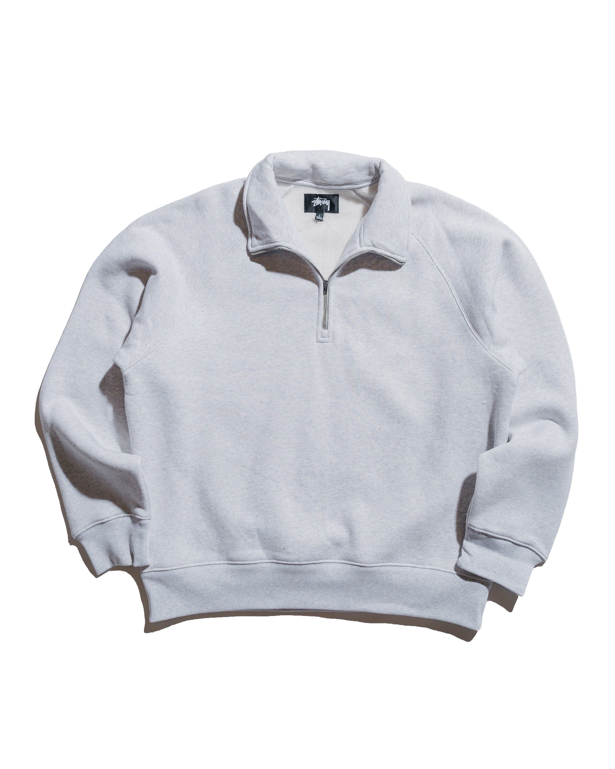 At this point you know we are not going to say no to a half zip. Ever. DETAILS - Garment washed 495GSM cotton blend fleece with brushed interior - Raglan sleeves - Half YKK metal zip closure - Stussy workgear label at side seam - 66% cotton 34% polyester - Model is 6'1" (186cm), 160lbs (73kg) and wearing size L