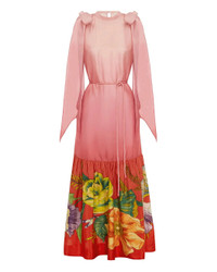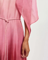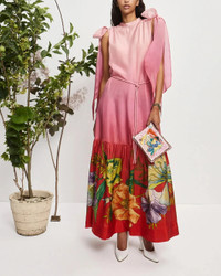 The Inez Silk Gown in Pink Ombre by Alemais is a sleeveless, relaxed fit midi dress featuring self-ties at the shoulder, gathered skirt hem, and self covered belt crafted in a floral printed silk. - Center back keyhole opening - Round neck - 100% Silk Habotai - #5222D