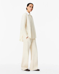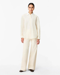 The Pleat Back Shirt in Ecru and White by Another Tomorrow is an oversized shirt featuring dropped shoulders and a curved hem with high cuts at the side. Only about 1.4% of all cotton grown globally is organic. The brand supports organic agriculture because it protects our land’s natural ecosystems by banning harmful chemicals, synthetic pesticides, and GMO seeds. - 100% Organic Cotton - Oversized attitude - Dropped shoulders - Unlined - Exaggerated curved hem, cuts high at sides - Flat buttons at front and cuff - Dry clean sparingly - Model is 5'10 and wearing a size S