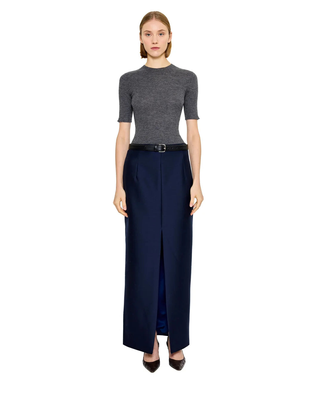 The Belsize Ribbed Sweater in Organic Cashmere in the color Charcoal by Arch4 is a short sleeve sweater top that is incredibly soft and offers plenty of warmth. The Belsize Sweater features ribbed detailing, crew neckline and a slim fit silhouette. Your perfect short sleeved knit for your fall wardrobe. **This product is made using at least 50% lower-impact materials or ingredients. - Material : 100% Organic Cashmere - Details: Designed for a slim fit. Lightweight. - Fit: True to size. - Style it with: A trouser or midi skirt. - Care: Dry clean - #KNJP23164