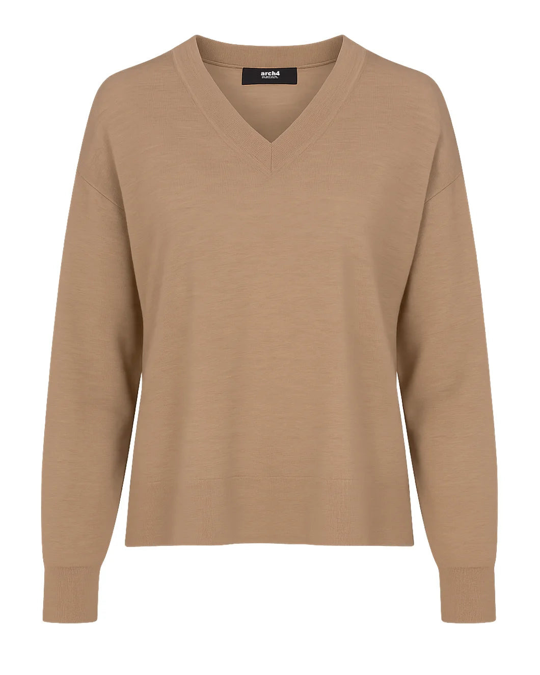 The Chiswick Top in Mink by Arch4 is a long sleeve, v-neck top crafted in a neutral, lightweight cashmere. - #KNJP25231