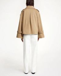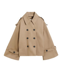 The Alisandra Trench Jacket in Organic Cotton Blend in the color Fosil by By Malene Birger is a double-breasted, cropped trench coat that features b uckled sleeve straps, s houlder epaulettes and wide sleeves. Your perfect long lasting transitional jacket.