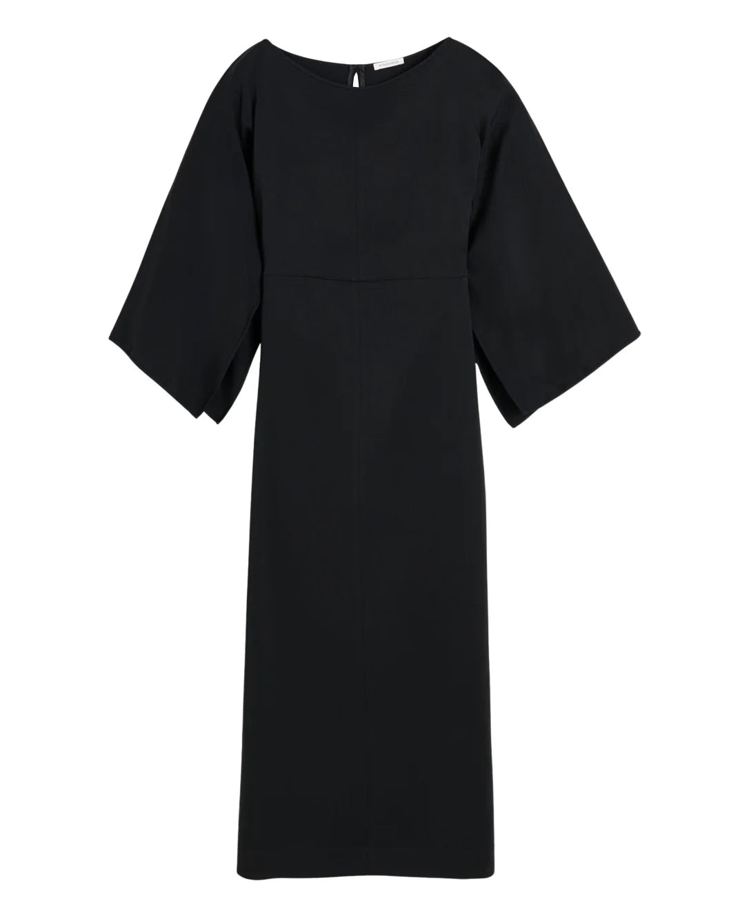 The Hella Maxi Dress in Viscose in the color Black by By Malene Birger is a long-sleeve midi dress that features a s traight silhouette, w ide sleeves with slits, an exposed back and discreet zipper closure. Your perfect after-hour black dress.