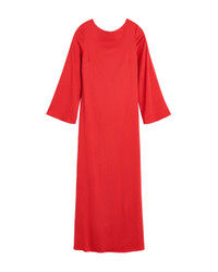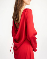 The Lisa Maxi Dress in Pompeian Red by By Malene Birger is a long-sleeve maxi dress that features a high neckline, wide sleeves, and elegant draping in the back for a perfect fit.