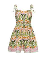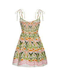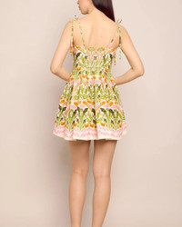 The Laia Dress in Juniper Egret by Cara Cara is a mini fit-and-flare dress featuring functional ties at the shoulders, center back smocking, and shirring at the waist. - Center back zipper opening with hook-and-eye closure - Boning at side seams and back princess seams - Bodice is fully lined, skirt is unlined - 100% Cotton Poplin, 100% Cotton Voile Lining - Dry Clean Only or Hand Wash Cold - Made in China