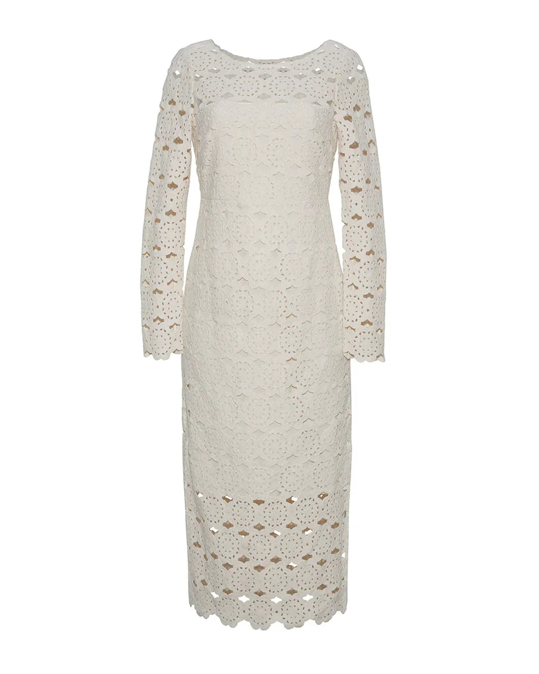 FINAL SALE The Marsielle Dress in Floral Natural Crochet by Cara Cara is a long sleeve midi dress crafted in an open lace with partial cotton lining , side slits, and scoop detail. - 100% Cotton Crochet Lace - Dry Clean Only or Hand Wash Cold - Made in China - Chest circ., Waist, Low Hip circ. (in.) - XS: 31.5, 27, 32.5 - S: 33.5, 29, 34.5 - M: 35.5, 31, 36.5 - L: 37.5, 33, 43, 40.5