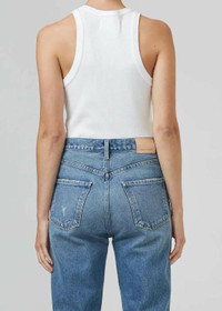 The Isabel Rib Tank in White by Citizens of Humanity is a foundation tank top featuring a close-fitting silhouette and a rib knit fabrication. Perfect for layering or alone, this neutral hue is a versatile addition. - 49% Tencel Lyocell 49% Organic Cotton 2% Spandex - Made in USA