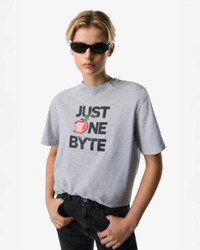 FINAL SALE The Disney x Coperni Just One Byte Boxy T-Shirt in Grey by Coperni is a relaxed, boxy fit t-shirt featuring a poison apple inspired slogan. - 100% Cotton - Made in Portugal - #DJS03F5028B