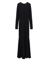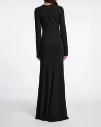 FINAL SALE The Soft Shape Dress in Black by Dorothee Schumacher is a round neck, maxi dress is crafted in a wrinkle-resistant, shaping jersey fabric featuring a longer draped train and zipped cuffs. - 75 % Viscose, 20 % Polyamide, 5 % Elastane - In-seam zipped cuffs - Center back zip - Wrinkle-free jersey fabric with a gentle shaping effect