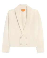 The Grizzly Le Jacket in Cream by Guest in Residence is a softy structured cashmere jacket featuring a dolman sleeve, four button closure, and doubled rib-shaw collar. - 100% Brushed cashmere - Relaxed fit - Signature GIR branding at back neck
