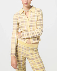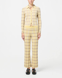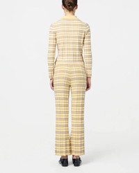 The Plaid Flare Pant in Butter Combo by Guest in Residence is a lightweight, rib plaid flare pant featuring a cropped length and elasticated rib waistband. - 70% Silk 30% Linen